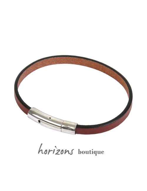 Armband in sportlichem Look aus cognacfarbenem Leder für Männer, die Klasse und Originalität suchen. Dieses Armband ist auch in Braun und Schwarz, sowie in einer 3-Reihen-Version erhältlich. Der dünne zylindrische Verschluss ist ein System, das einrastet und sich leicht schliessen lässt. Es wird durch Drücken der kleinen Lasche geöffnet.
