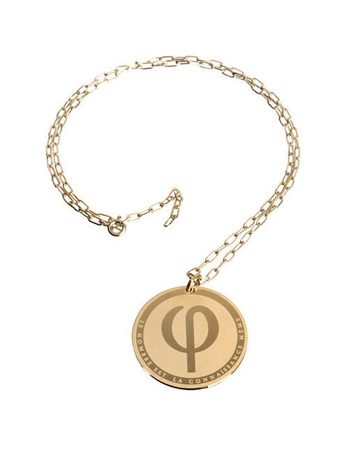 Halskette aus der EPPURE-Kollektion mit einem Medaillon, wo der Buchstabe PHI eingraviert ist. Ob mathematisch, alphabetisch oder symbolisch, diese Halskette spricht Sie in der Sprache an, die zu Ihnen passt. Auch in Silbergrau erhältlich
