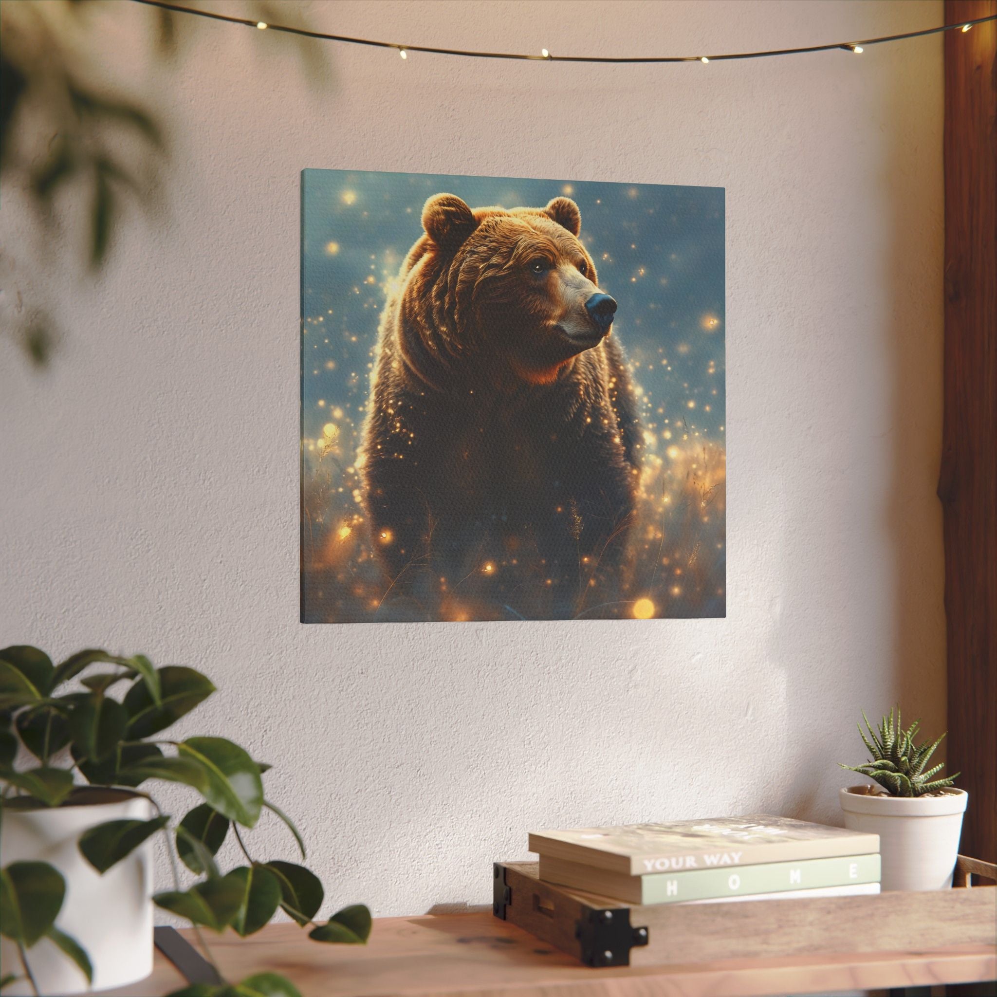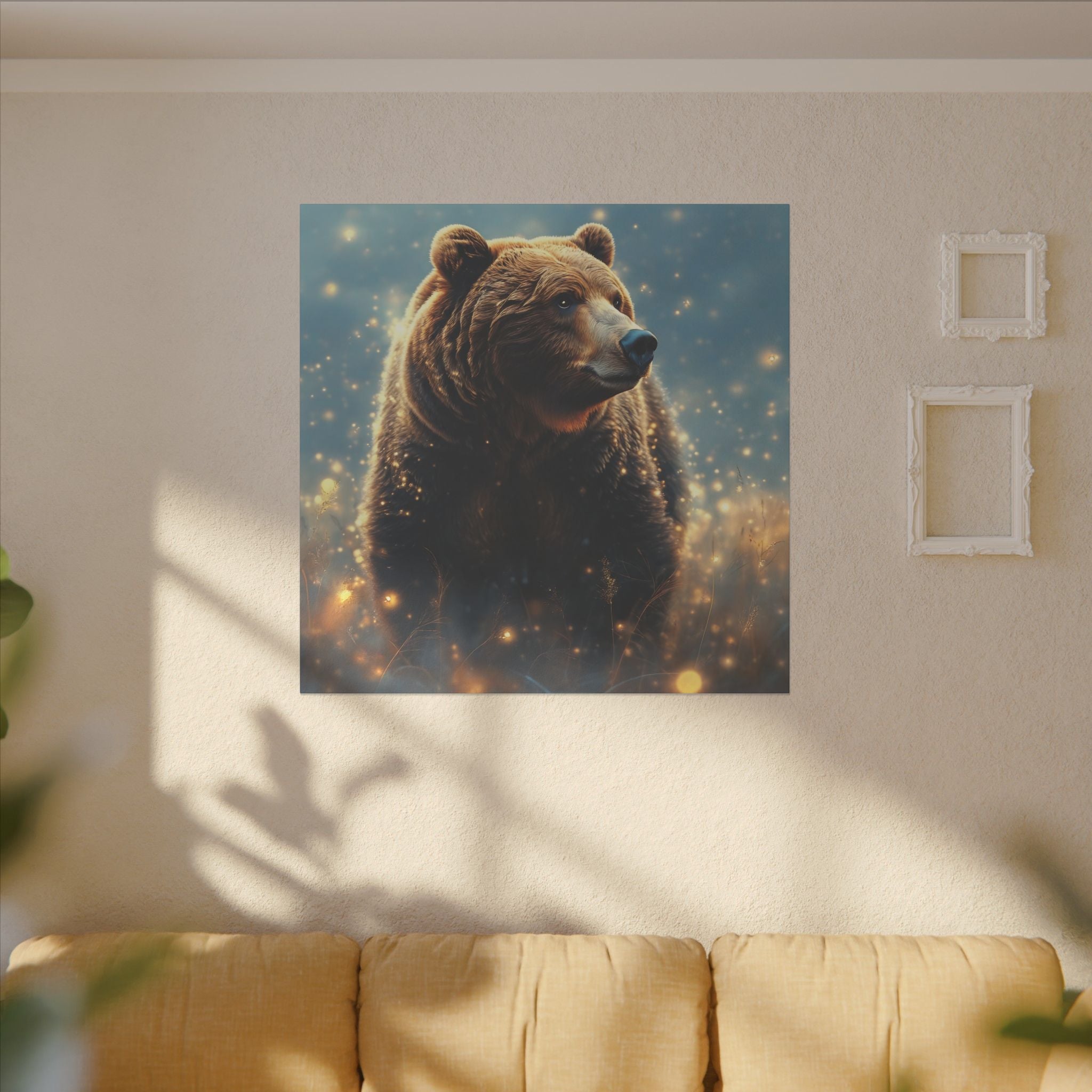 Ein Braunbär erscheint an Ihrer Seite auf dieser beeindruckenden, gedruckten Leinwand. Mit seinen lebendigen Farben und der aussergewöhnlichen Druckqualität verleiht dieses Kunstwerk jedem Raum einen Hauch von Eleganz.