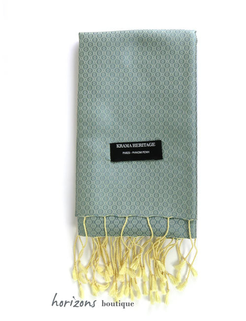 Luxuriöses und elegantes High-End-Krama aus reiner Seide mit Jasminblumendruck und gewebten Fransen.