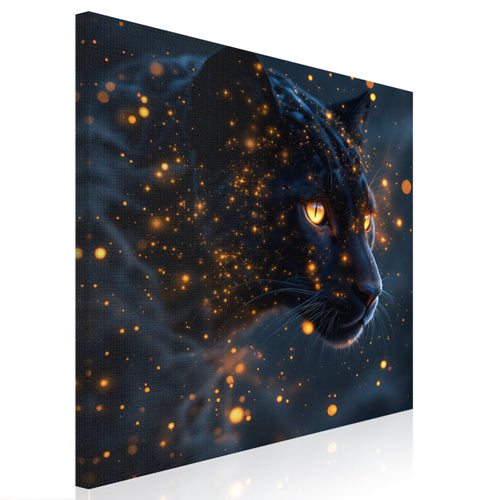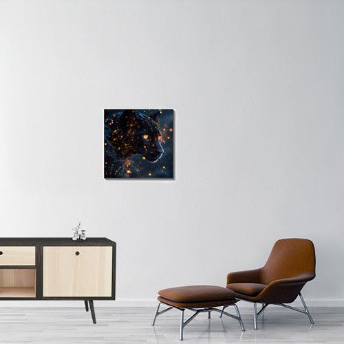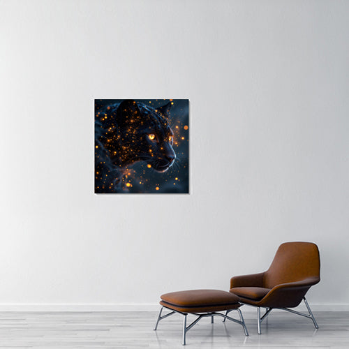The black guepard shows itself with all its magic on this canvas which elegantly embellishes your interior space.