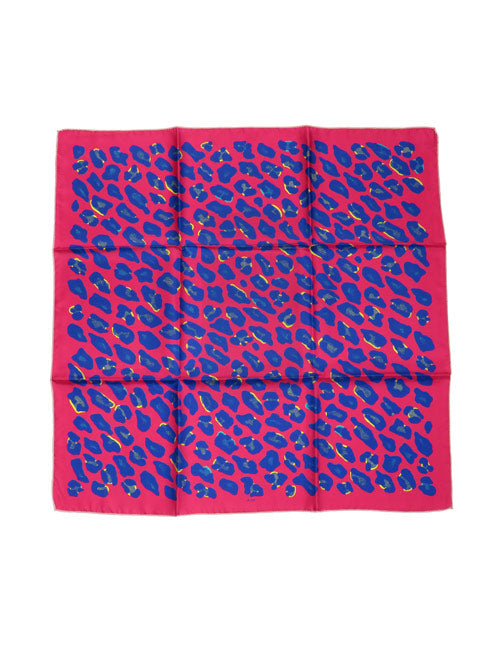 Medium size silk scarf with a brightly colored leopard print in fuchsia. This scarf can be worn in a classic way tied around the neck, or as an accessory on a handbag, on a hat, on the head, or even as a bandana.