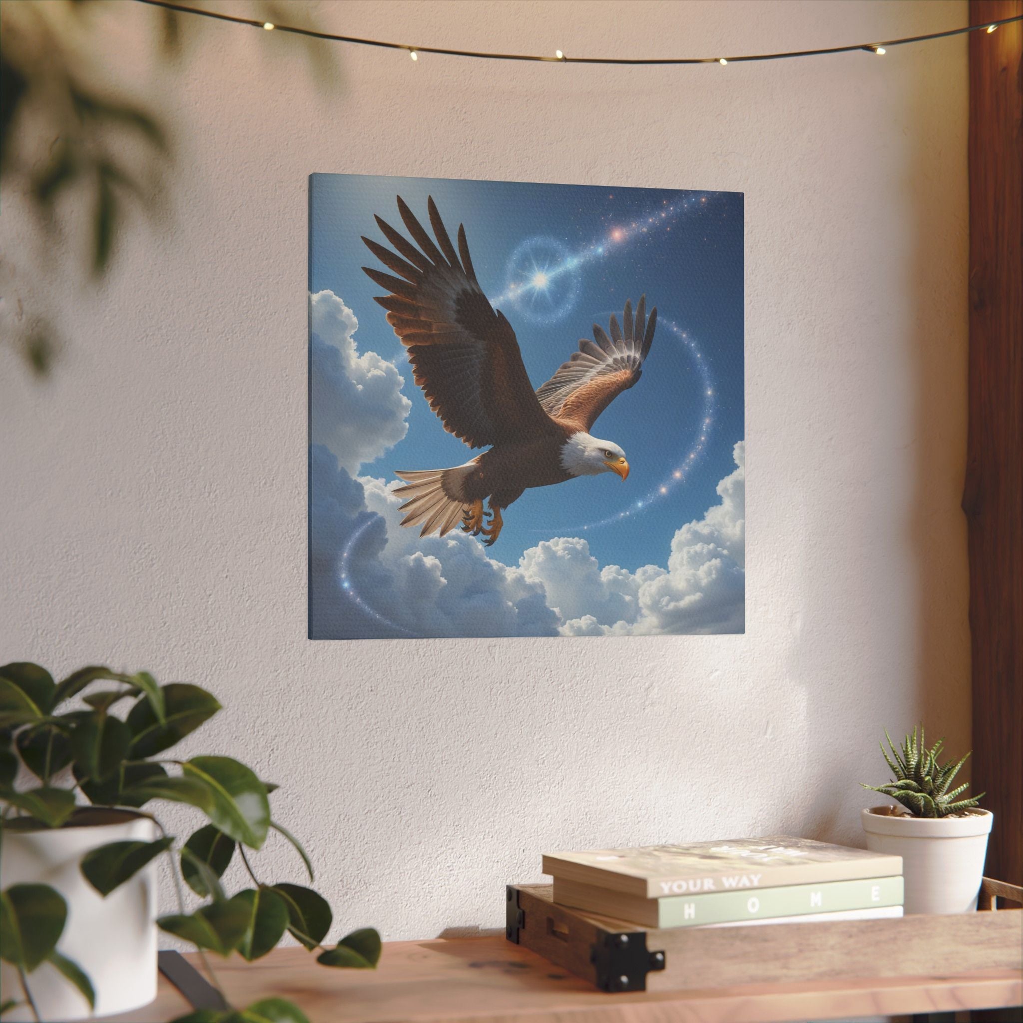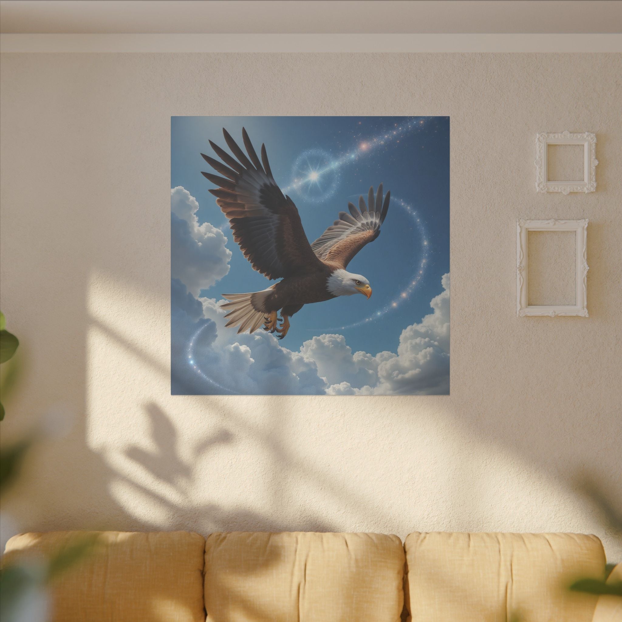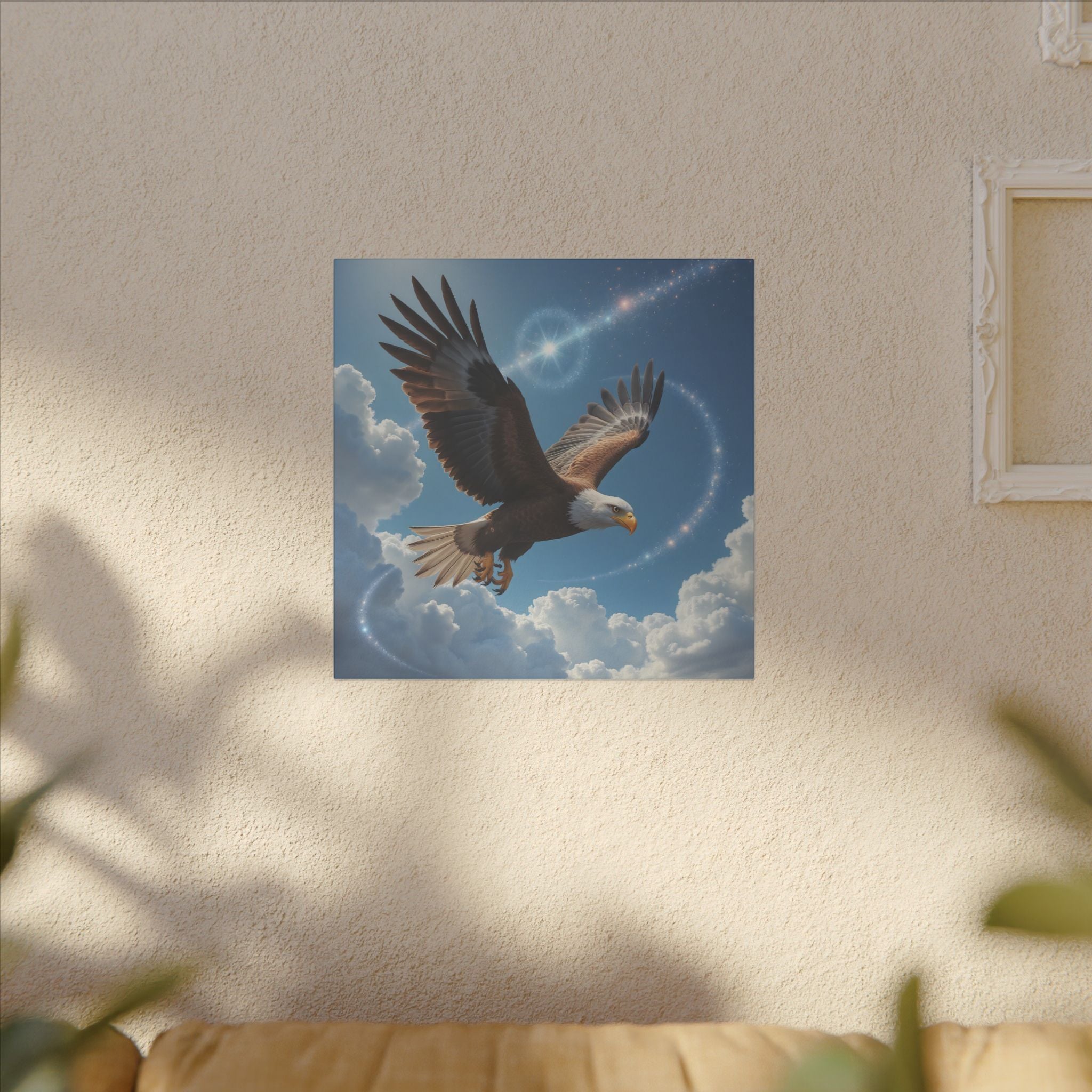 L'aigle s'élève dans un ciel éclatant sur cette toile qui ajoute une touche d'élégance et d'inspiration à n'importe quelle pièce. Laissez cette œuvre d'art vous rappeler la liberté et la beauté du vol en rehaussant votre espace de vie par sa présence captivante.