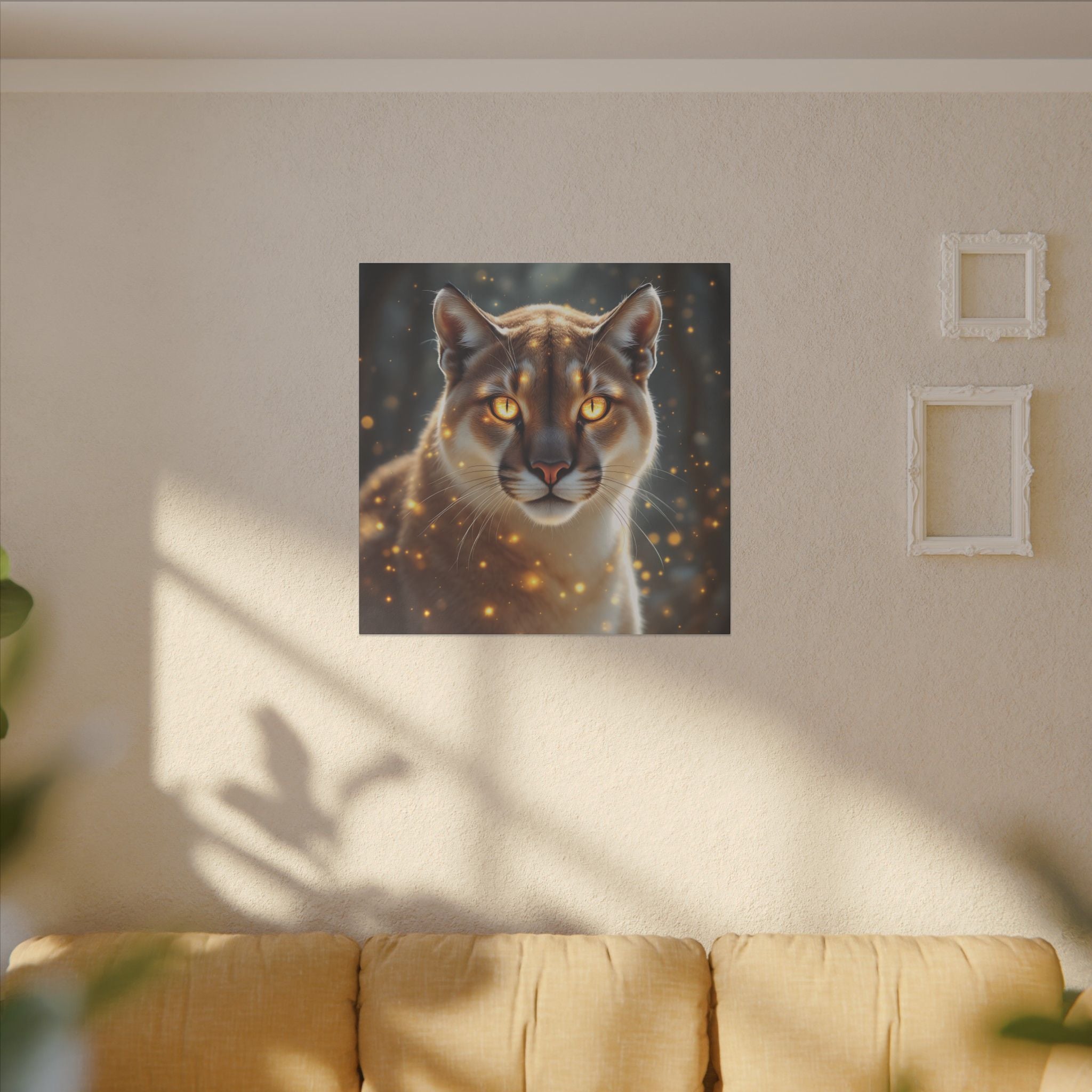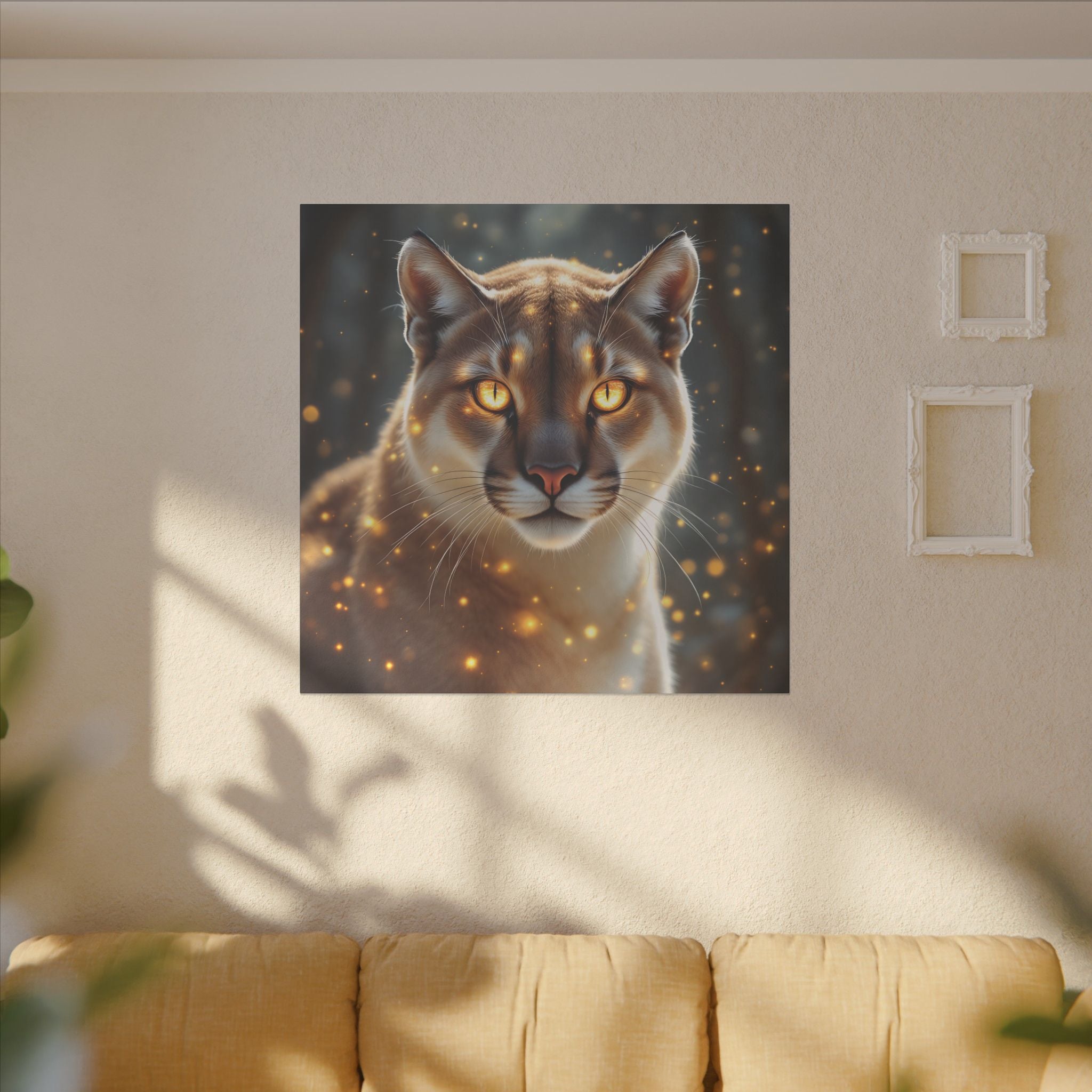 Le puma (ou couguar) comme animal totem vous accompagne dans votre intérieur sur cette toile en impression giclée. Avec ses couleurs vibrantes et son imagerie captivante, cette œuvre d'art rayonne de chaleur et de créativité, ce qui en fait un ajout parfait à votre espace de vie.